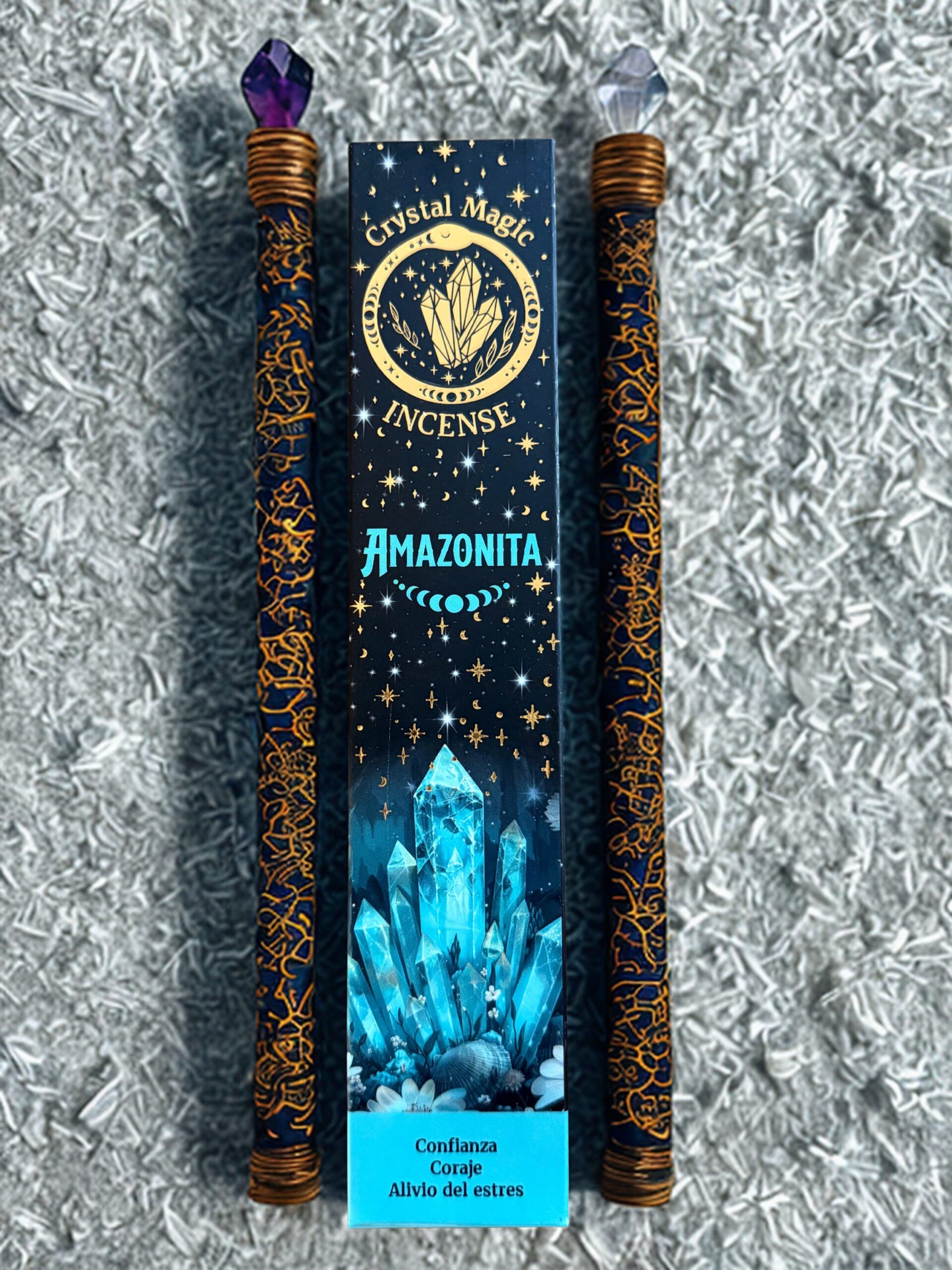Les Encens Magie Cristaux ont été créés pour ceux qui cherchent à unir arôme, spiritualité et l’énergie unique des cristaux. Chaque emballage inclut un petit sac avec le cristal correspondant en cadeau, permettant de renforcer encore plus l’intention de chaque arôme.