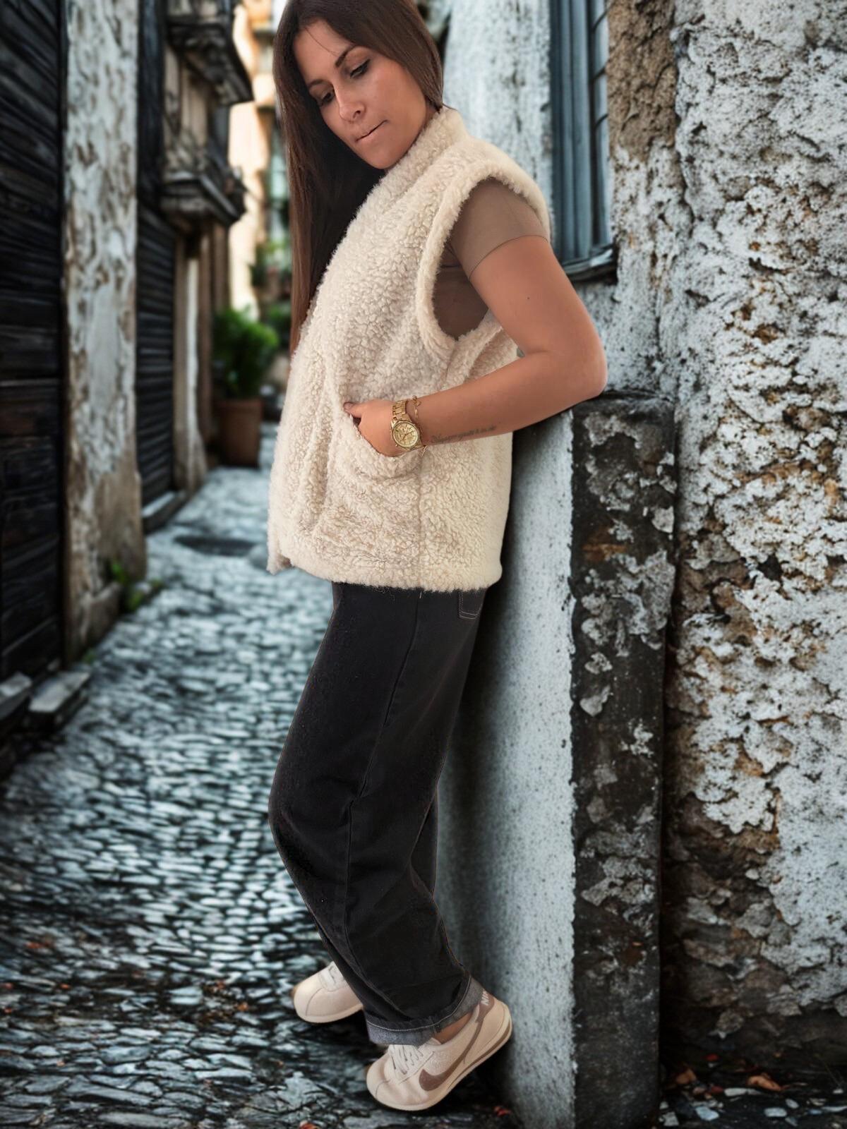 Apportez une touche de douceur et de luminosité à votre dressing avec cette veste sans manches en moumoute blanche. À la fois élégante et tendance, elle illumine vos tenues tout en offrant un confort chaleureux au quotidien.