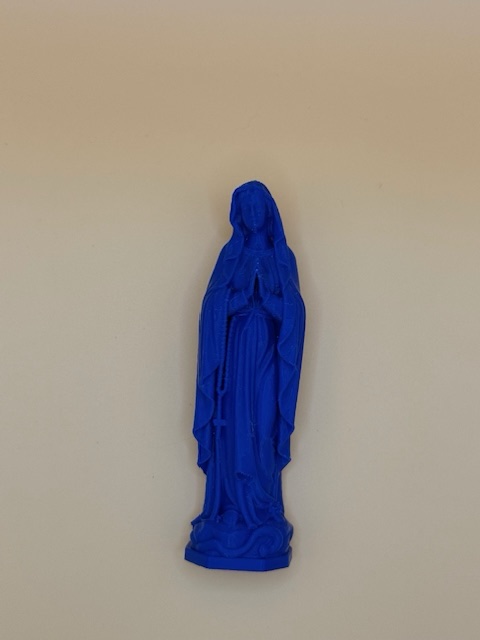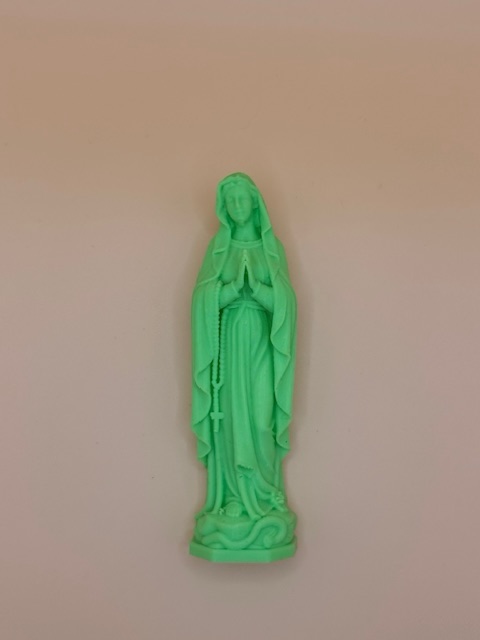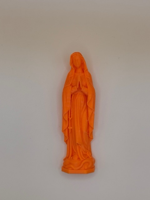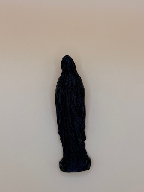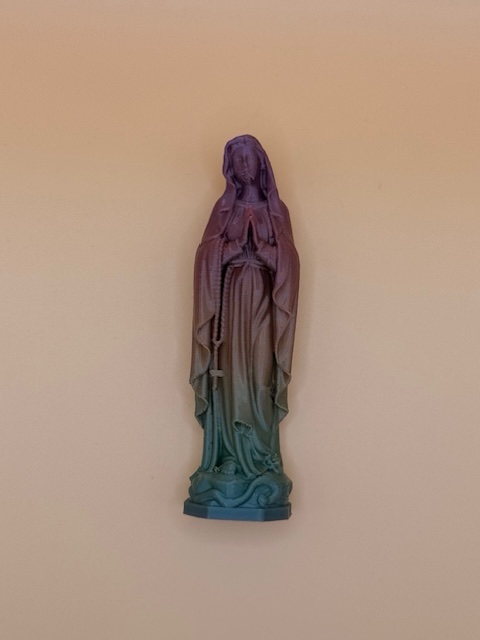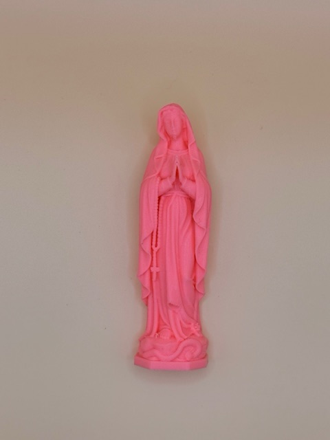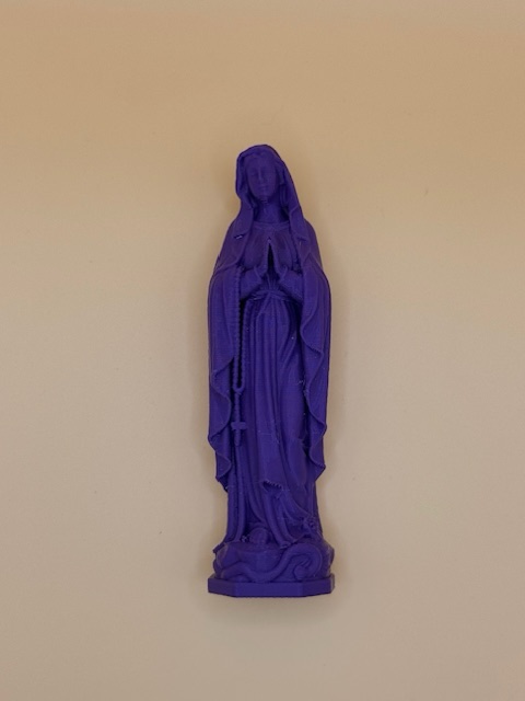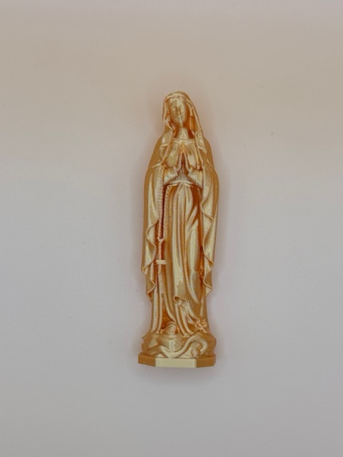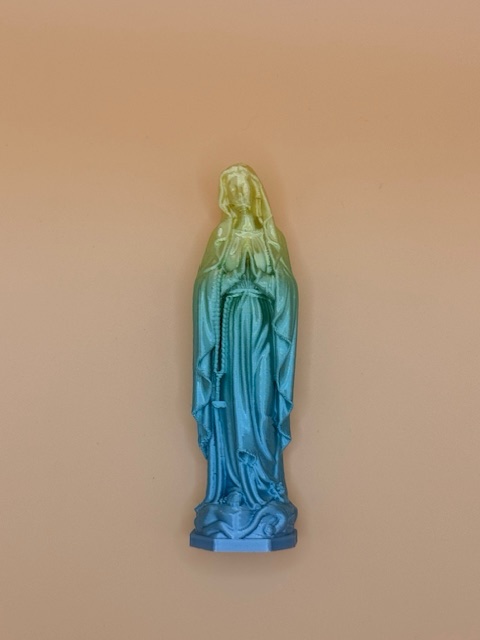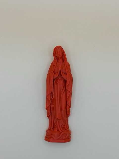 Magnet de la Vierge Marie de 8 cm, imprimé en 3D en PLA. Léger, écologique et aimanté, idéal comme souvenir religieux ou cadeau spirituel.