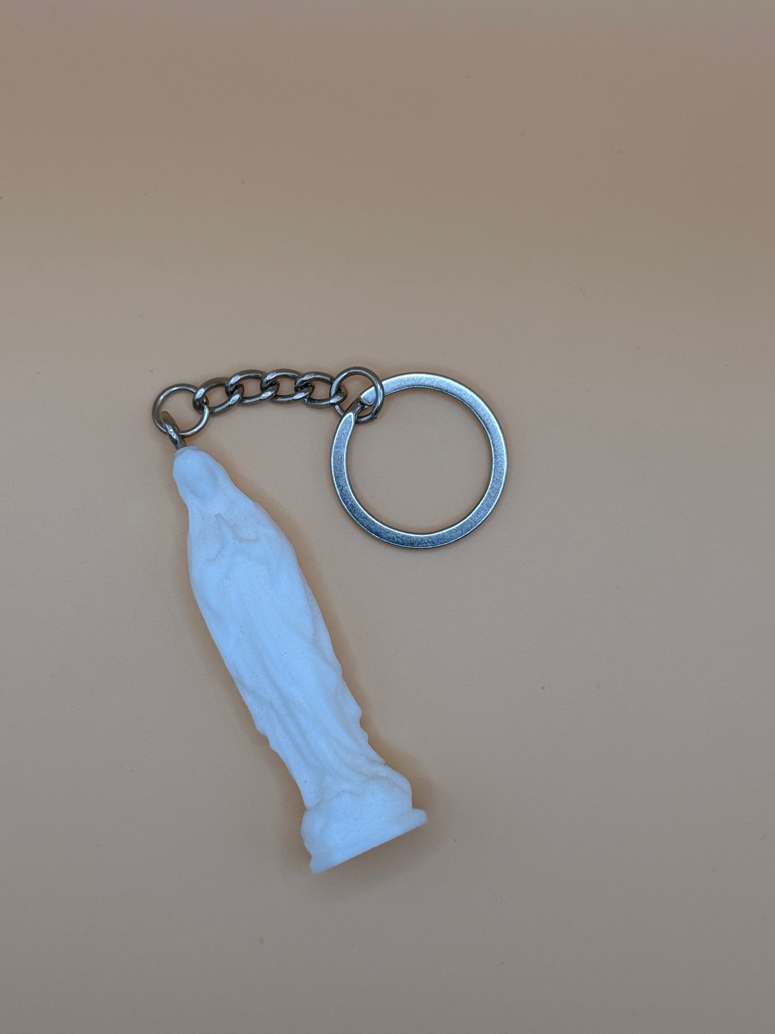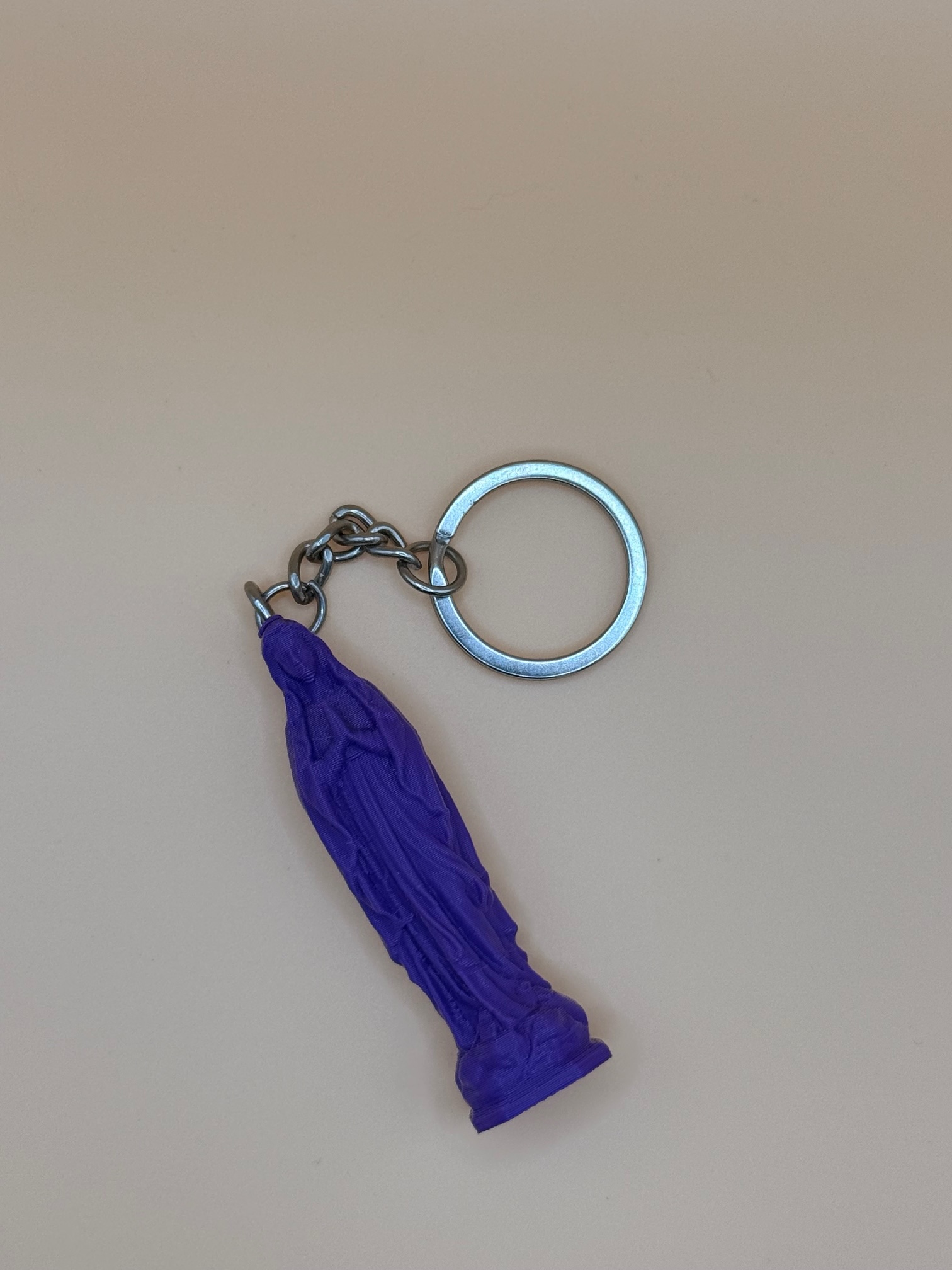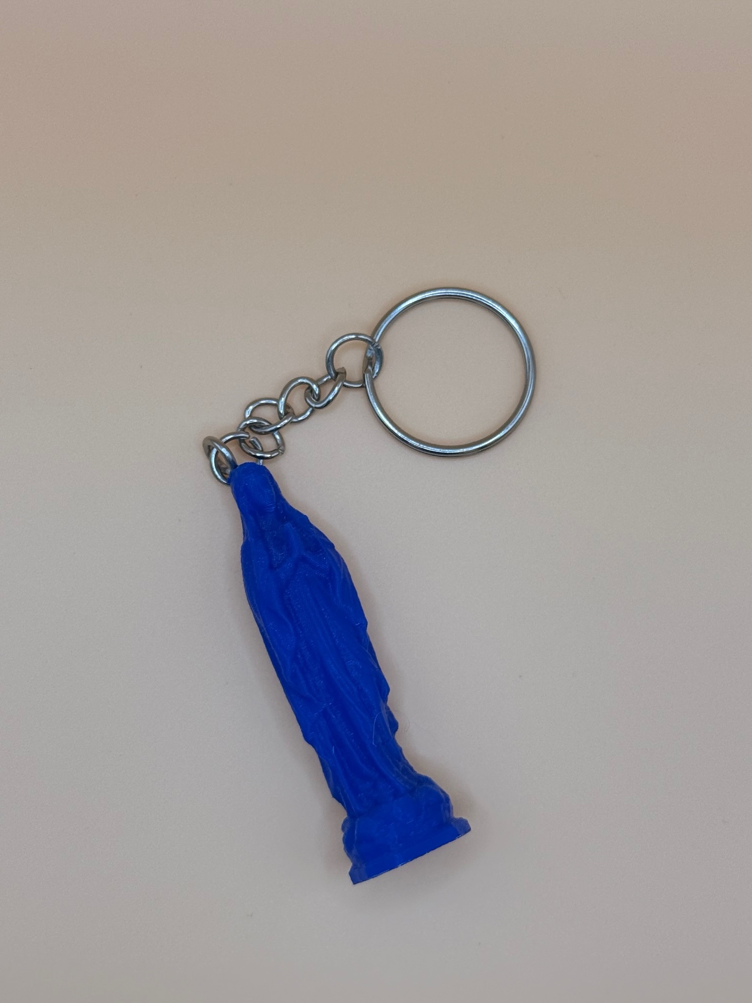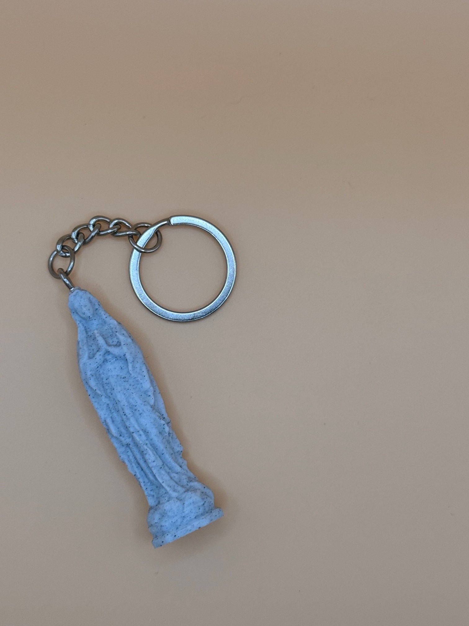 Porte-clés de la Vierge Marie imprimé en 3D en PLA. Léger, écologique et pratique, idéal comme souvenir religieux ou cadeau spirituel.