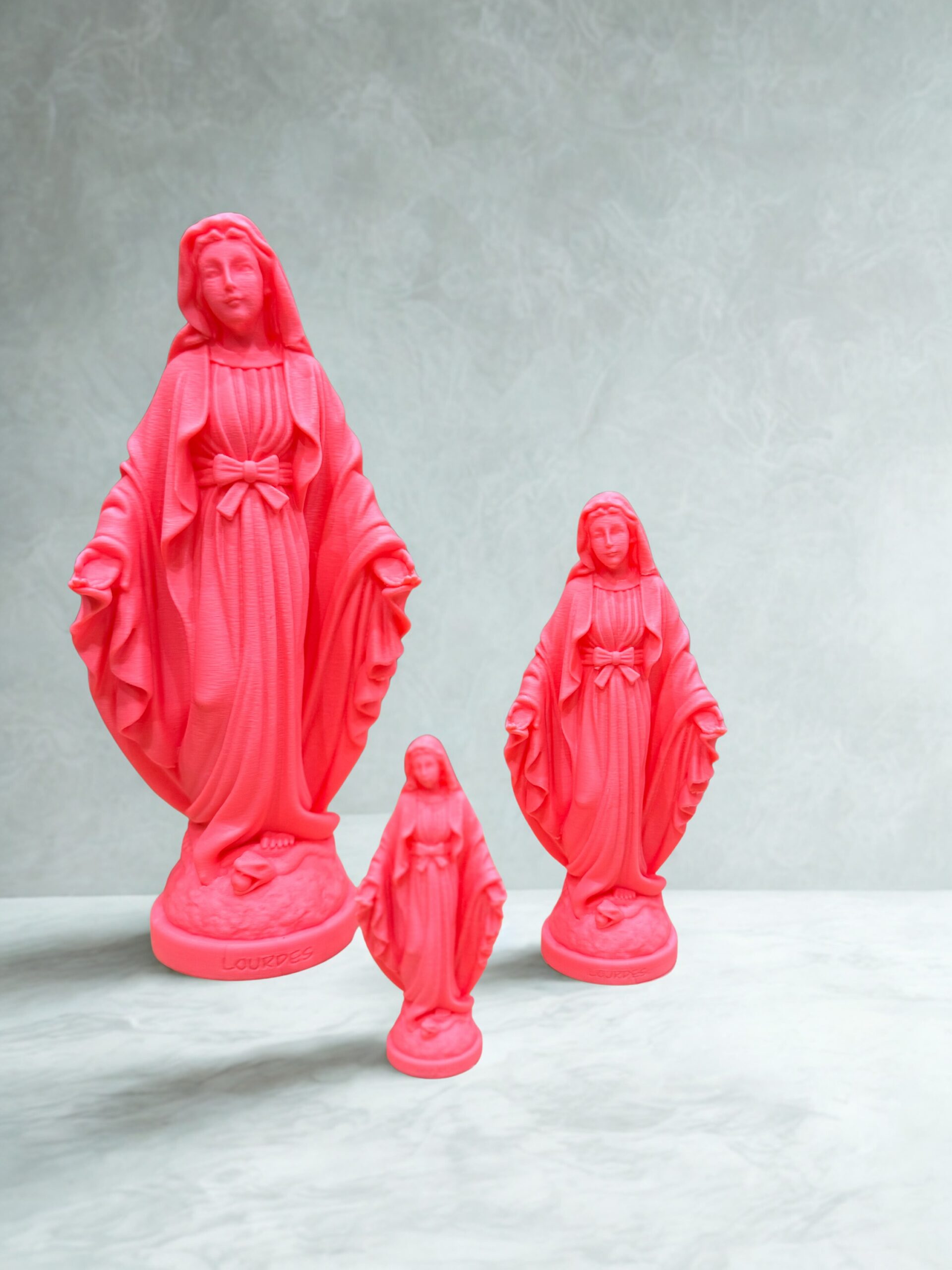 Expédition dans les 48HStatue de la Vierge Marie imprimée en 3D en PLA, fabriquée à Lourdes. Disponible en 3 tailles (8, 13.5et 21cm) et en plusieurs coloris. Idéale pour la prière, la décoration ou comme cadeau religieux.