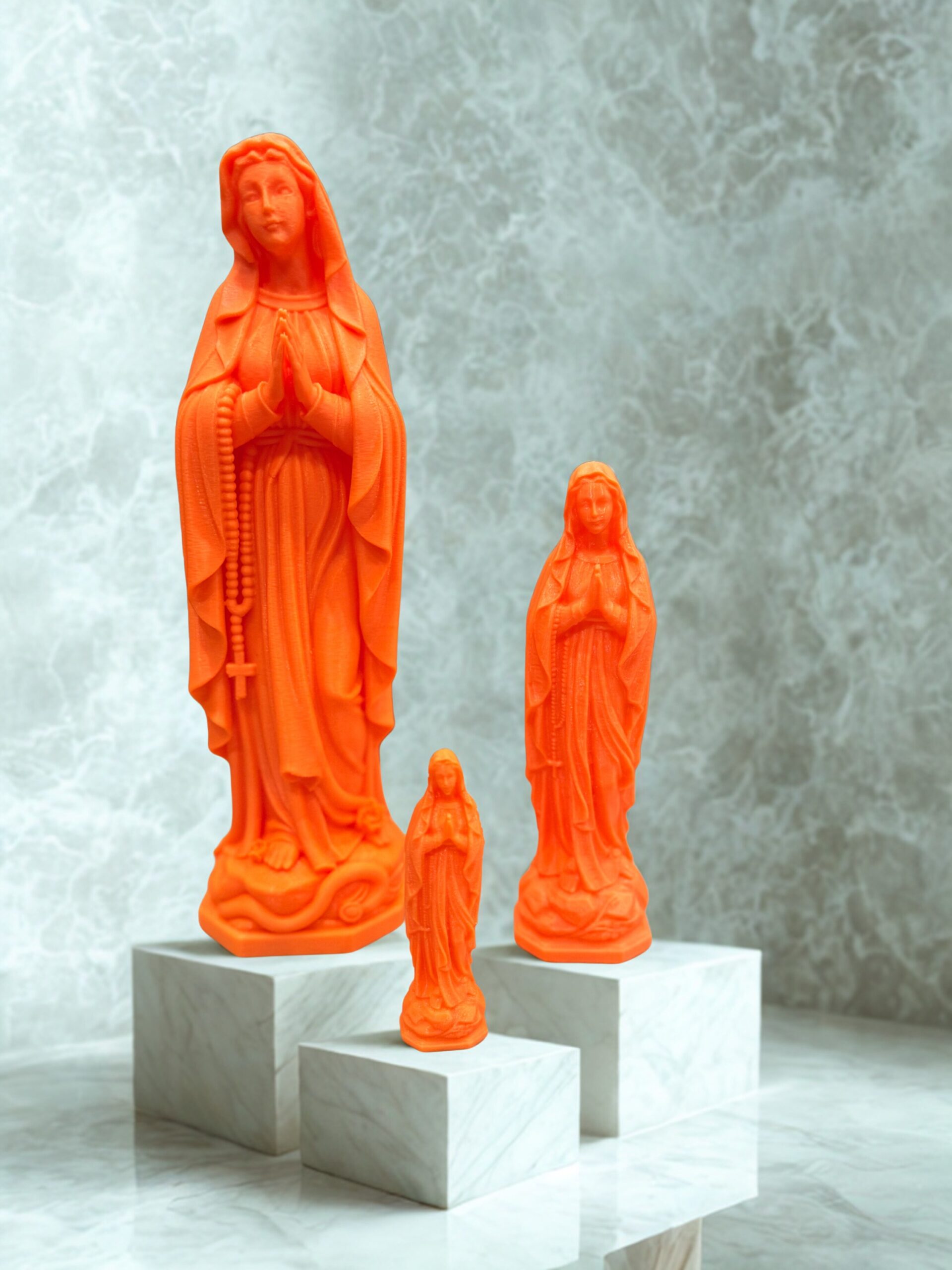 Expédition dans les 48HStatue de la Vierge Marie imprimée en 3D en PLA, fabriquée à Lourdes. Disponible en 3 tailles (8, 14 et 23 cm) et en plusieurs coloris. Idéale pour la prière, la décoration ou comme cadeau religieux.