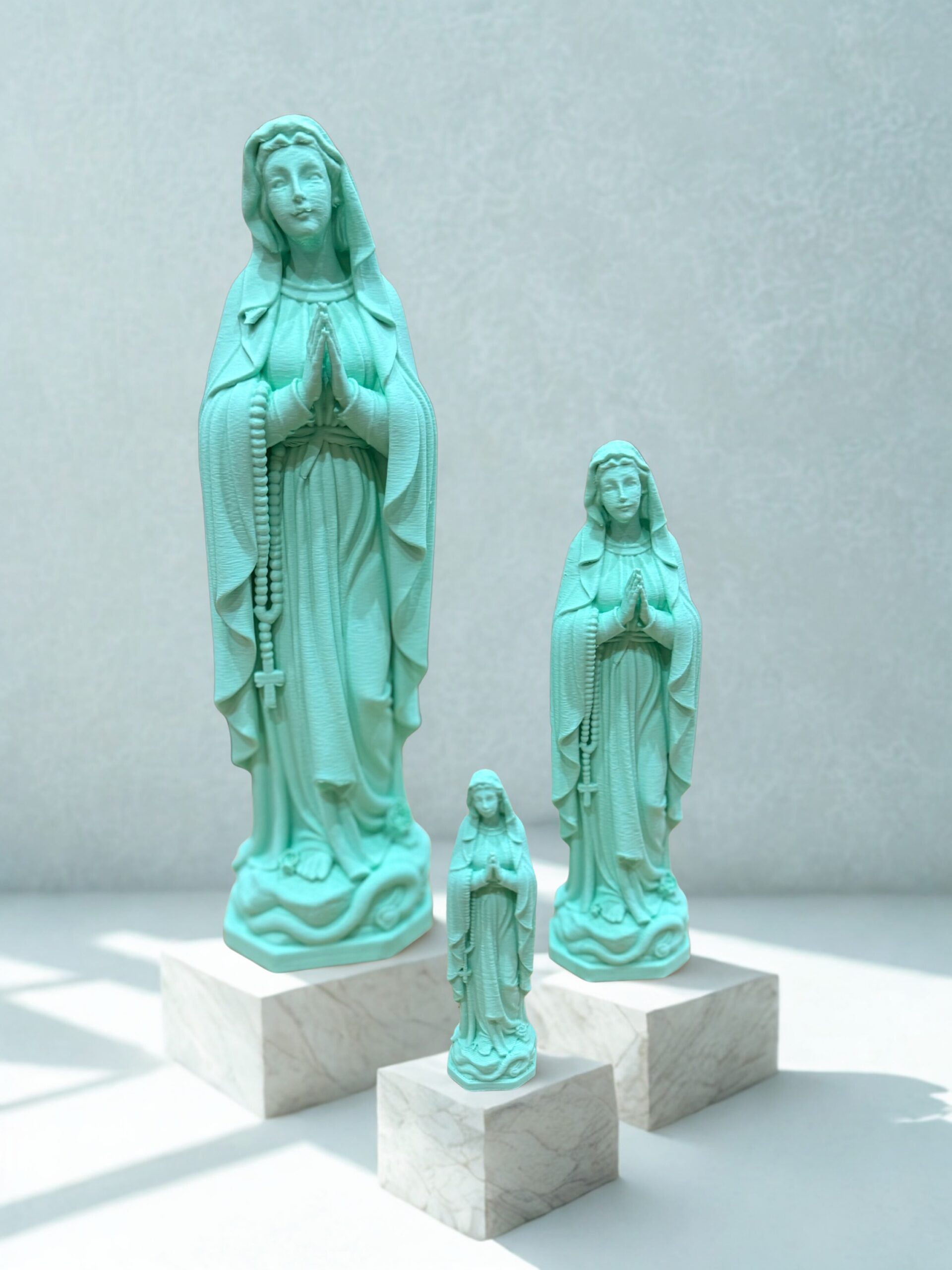Expédition dans les 48HStatue de la Vierge Marie imprimée en 3D en PLA, fabriquée à Lourdes. Disponible en 3 tailles (8, 14 et 23 cm) et en plusieurs coloris. Idéale pour la prière, la décoration ou comme cadeau religieux.