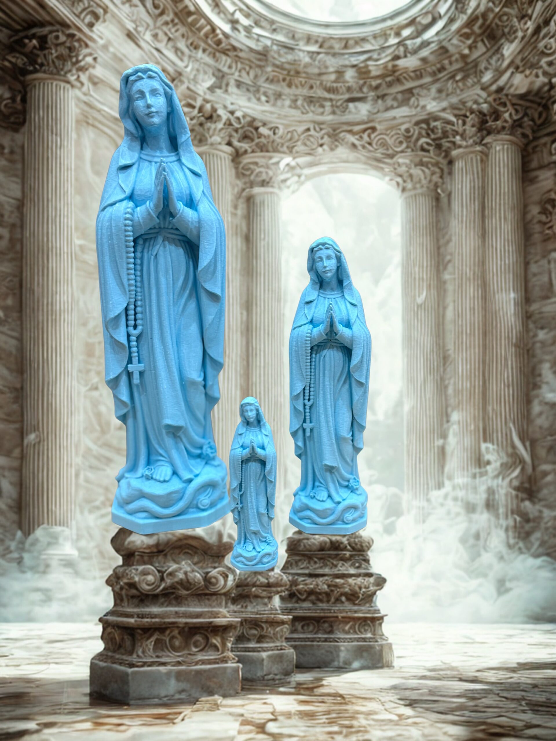 Expédition dans les 48HStatue de la Vierge Marie imprimée en 3D en PLA, fabriquée à Lourdes. Disponible en 3 tailles (8, 14 et 23 cm) et en plusieurs coloris. Idéale pour la prière, la décoration ou comme cadeau religieux.