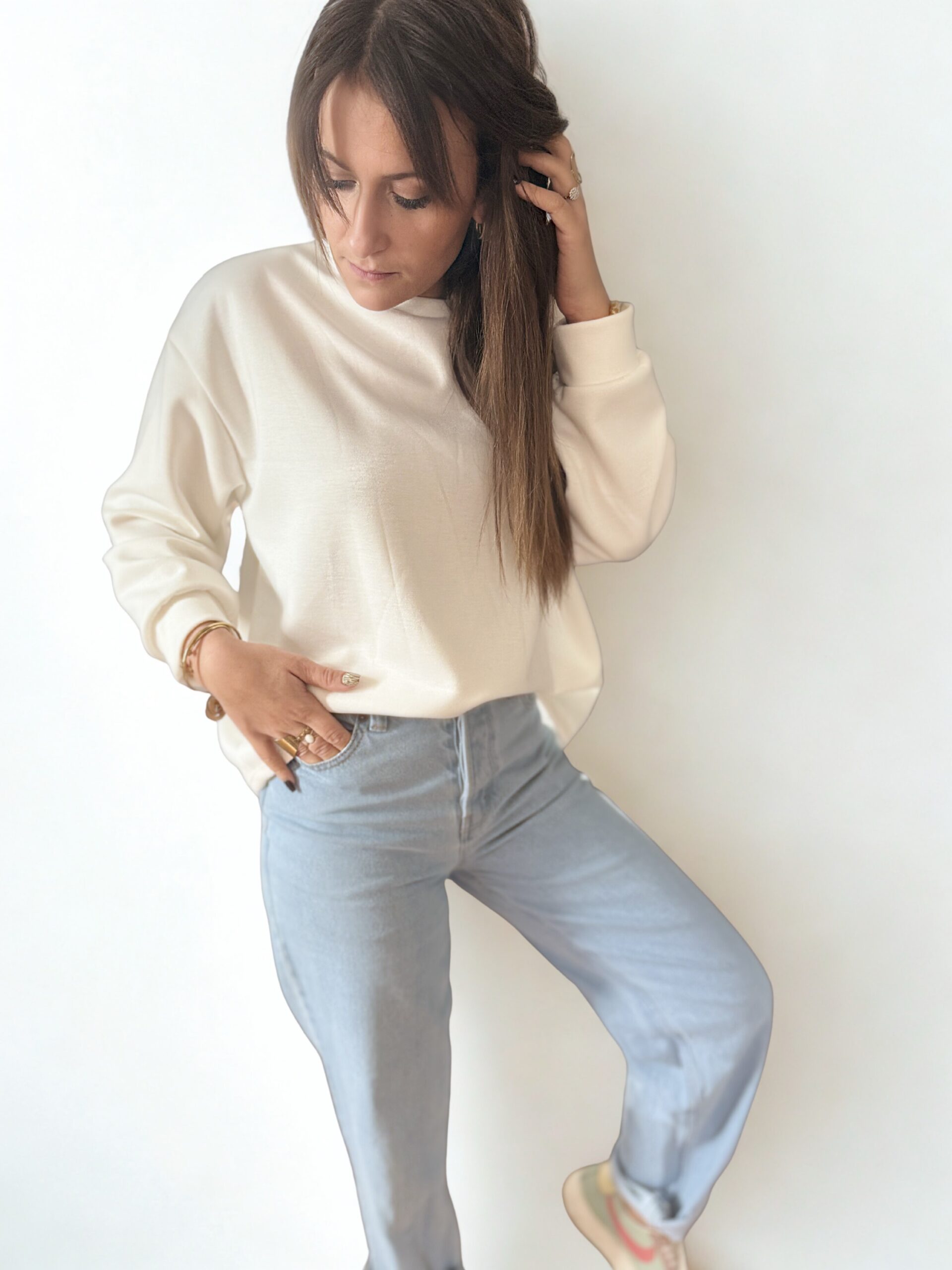Conçu en taille unique, il s’adapte naturellement à différentes morphologies grâce à sa matière souple et extensible. Parfait pour un look casual chic, à porter aussi bien avec un jean qu’un legging.